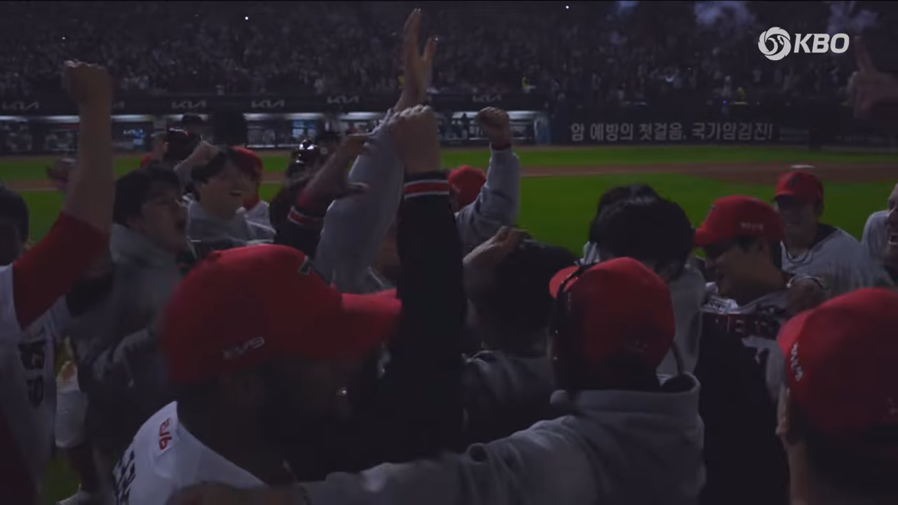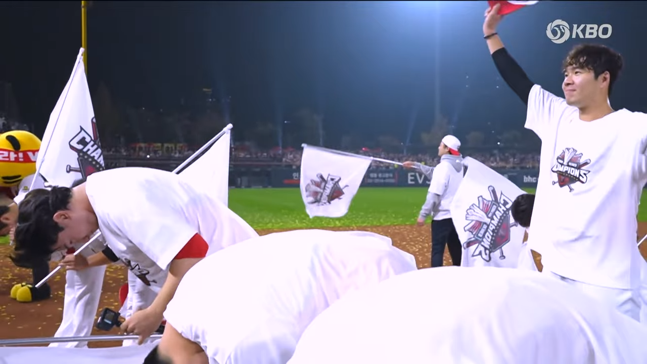 경기가 끝난 후 광주 기아챔피언스필드는 팬들과 선수들의 환호로 가득 찼습니다.