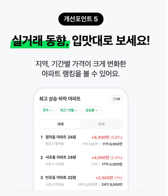 네이버부동산의 인기 매물 순위를 통해 다른 사용자들이 많이 찾는 매물을 확인하고, 시장의 트렌드를 쉽게 파악할 수 있습니다.