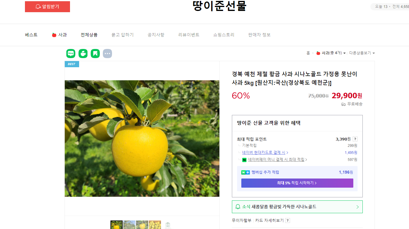 이복락 씨의 사과는 땅이준선물이라는 스마트스토어를 통해 택배로 주문할 수 있습니다.