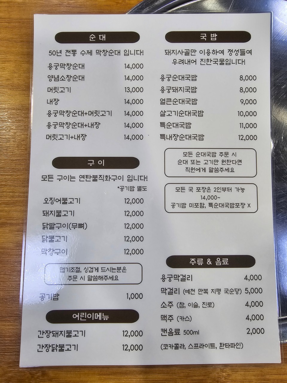 동네한바퀴에 소개된 용궁순대의 메뉴는 전통적인 순대 요리와 더불어 다양한 국밥과 불고기 요리를 제공합니다.