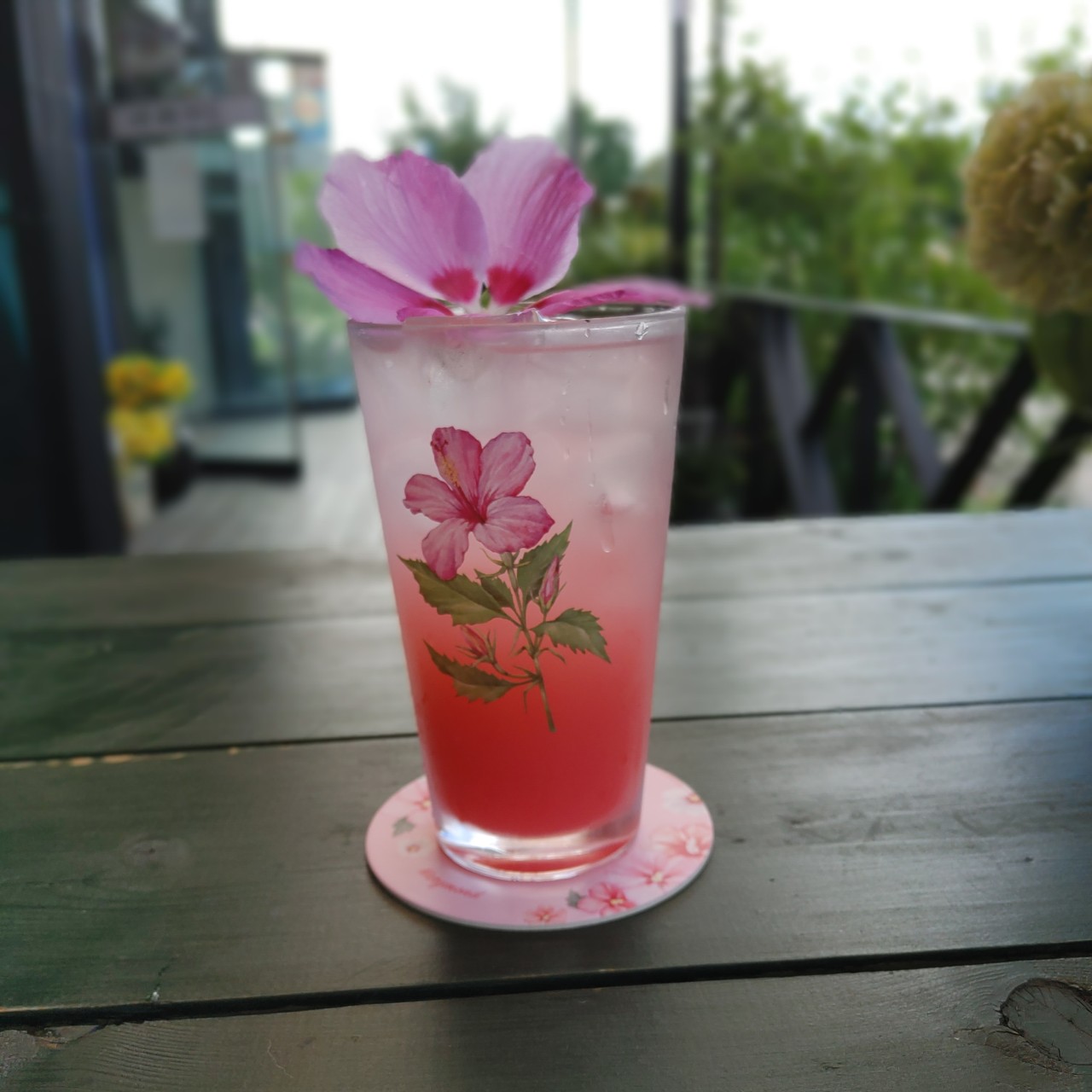무궁화카페의 시그니처 메뉴는 무궁화청으로 만든 무궁화에이드와 무궁화꽃차입니다.