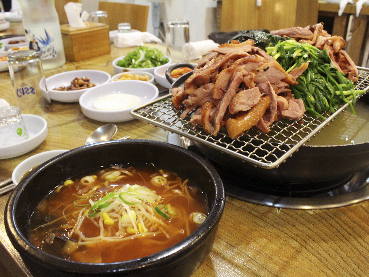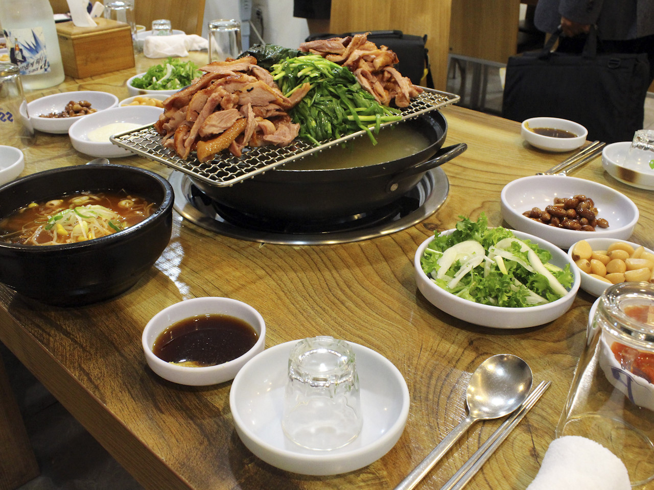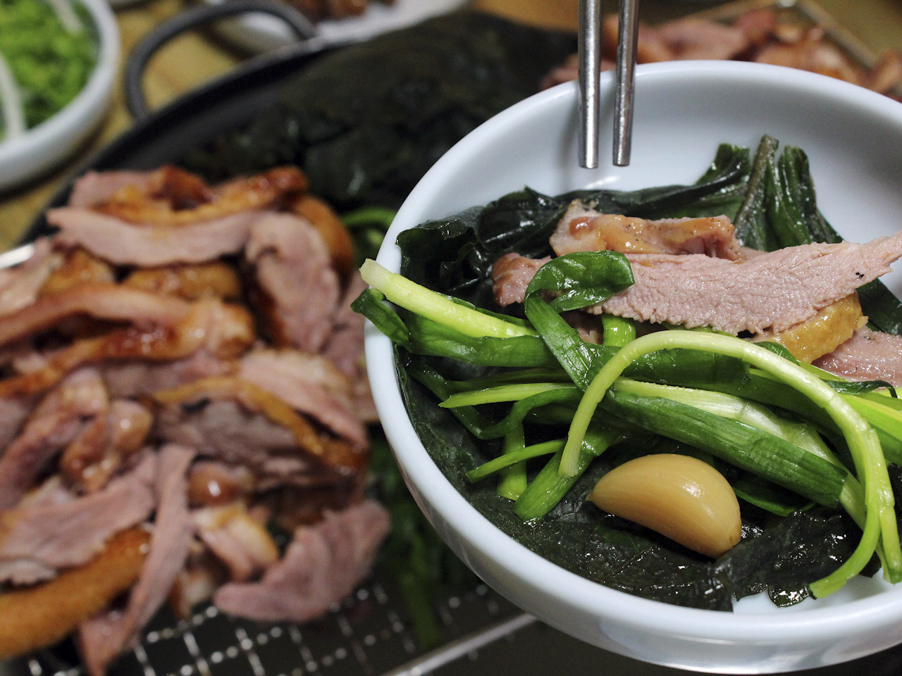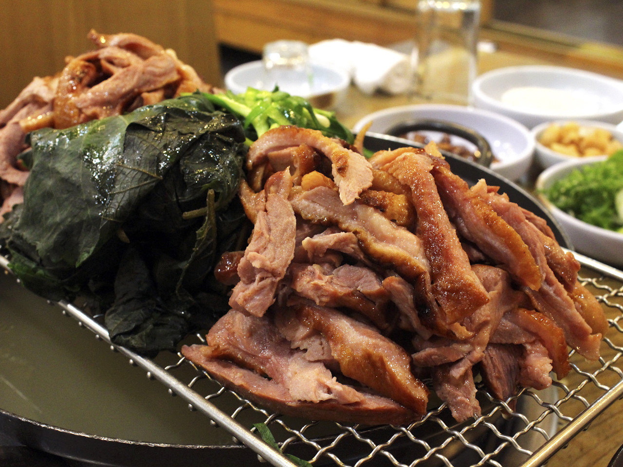 - 특징: 오리를 육수 위에 데워 깻잎과 부추에 싸서 먹는 방식