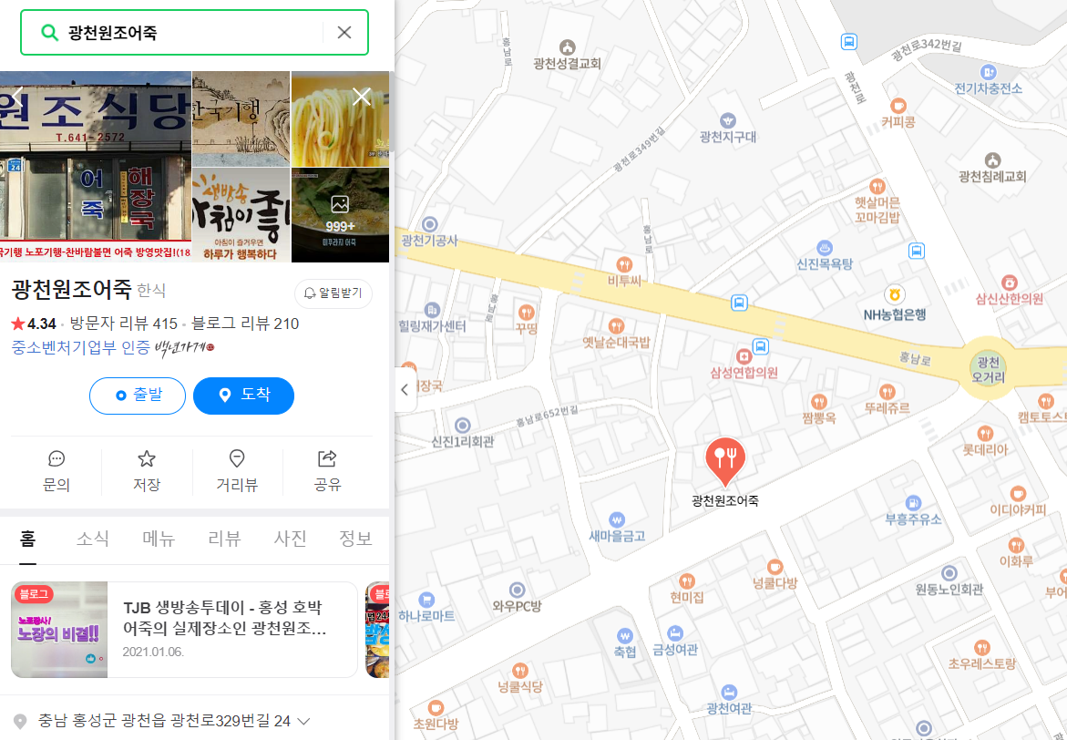 - 식당이름: 광천원조어죽