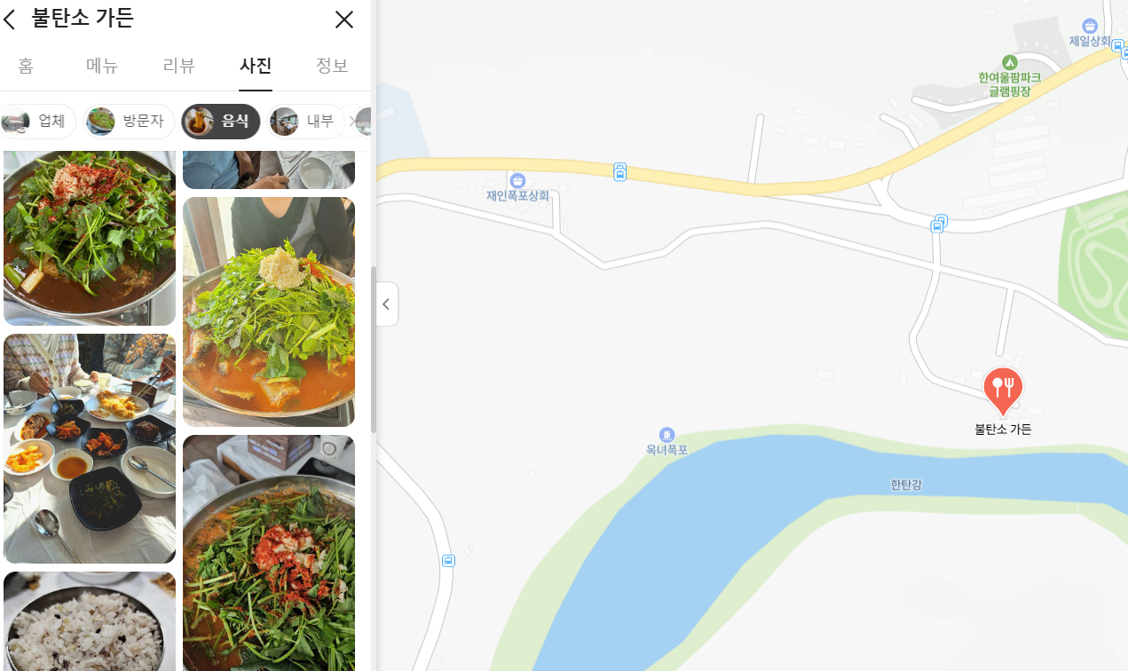 - 특징: 한탄강 절벽에 자리한 자연경관과 신선한 재료로 만든 매운탕이 인기