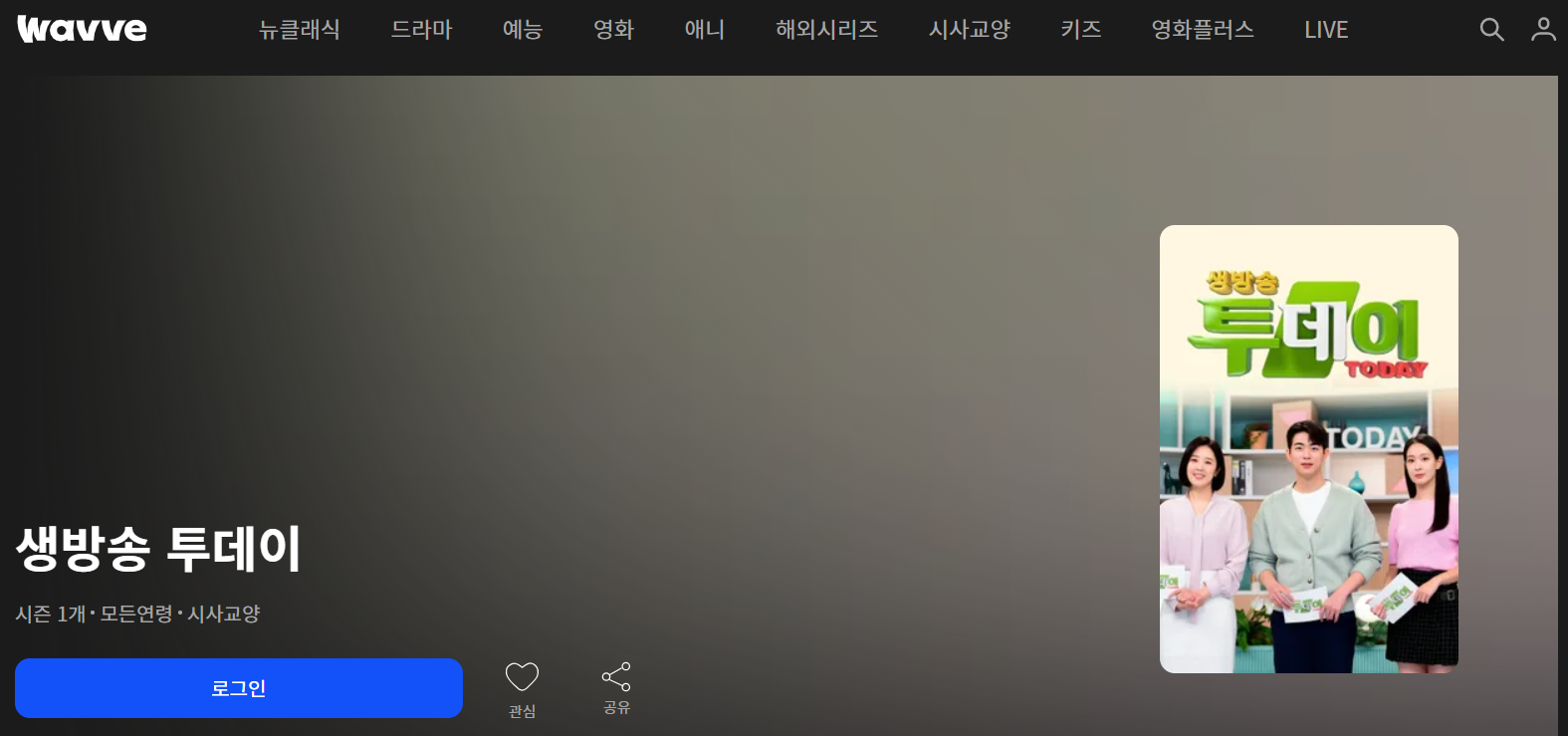 현재 웨이브에서는 첫 달 100원 할인 혜택을 진행 중이니, 저렴하게 구독하셔서 '생방송투데이'를 즐겨보세요.