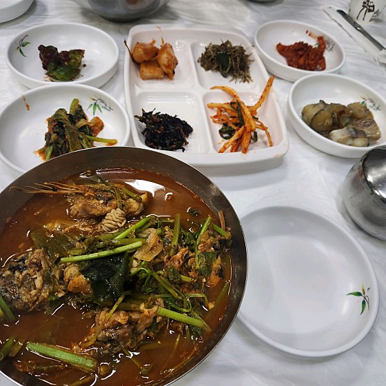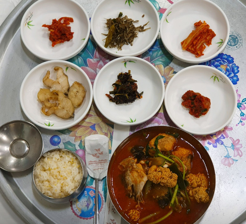 강릉 중앙시장의 2층에 위치한 해성집은 현지인들과 관광객 모두에게 인기 있는 매운탕 전문점으로,