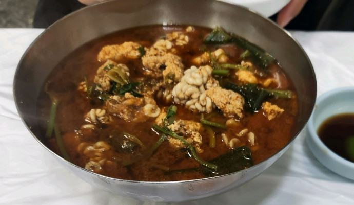 - 구수한 육수에 살이 풍부하게 들어간 삼숙이탕은 얼큰하고 시원한 국물 맛으로 유명합니다. 고명으로 올라가는 미나리가 신선함을 더해줍니다.