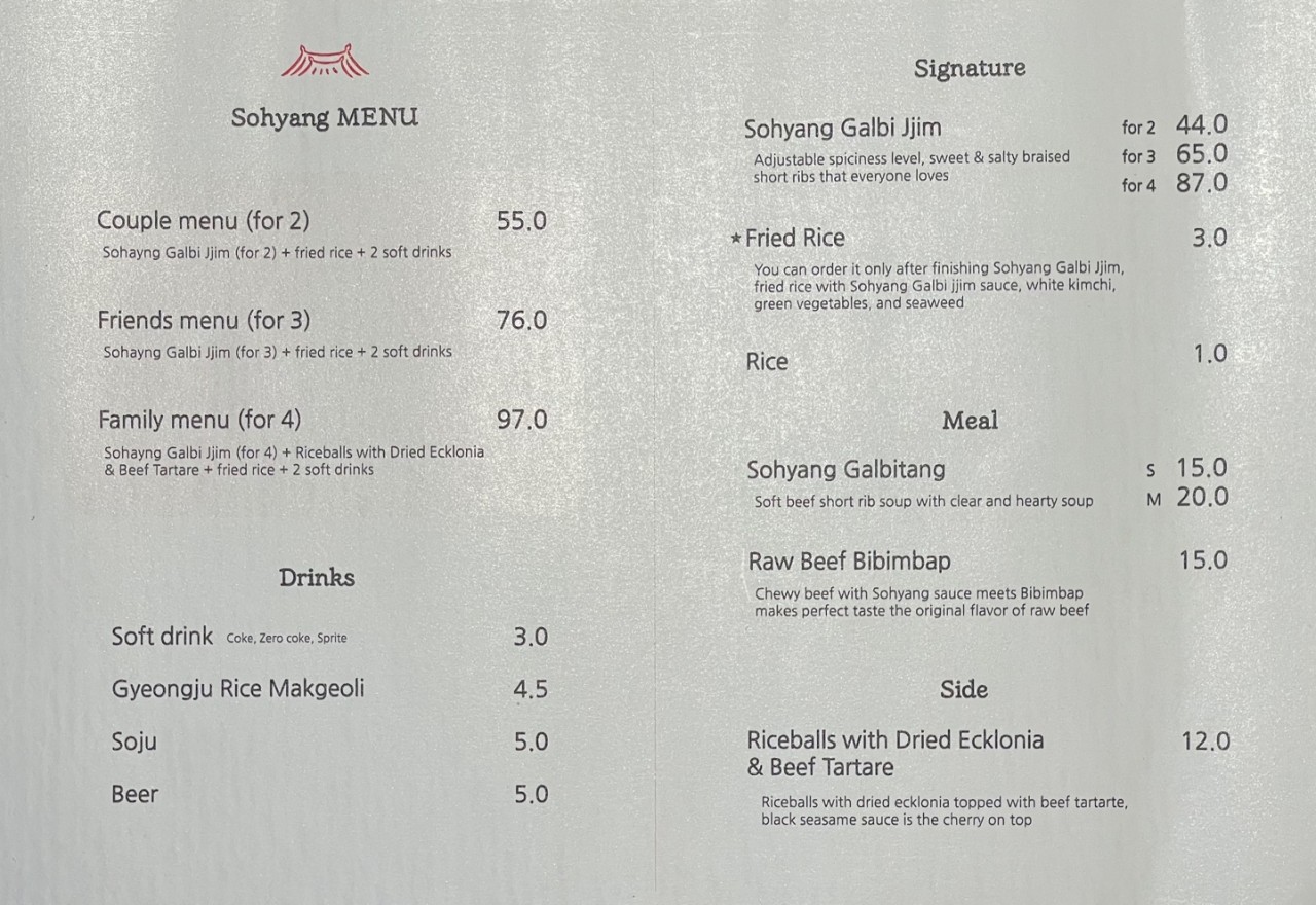 소촌갈비찜 해리단길본점 메뉴 및 가격