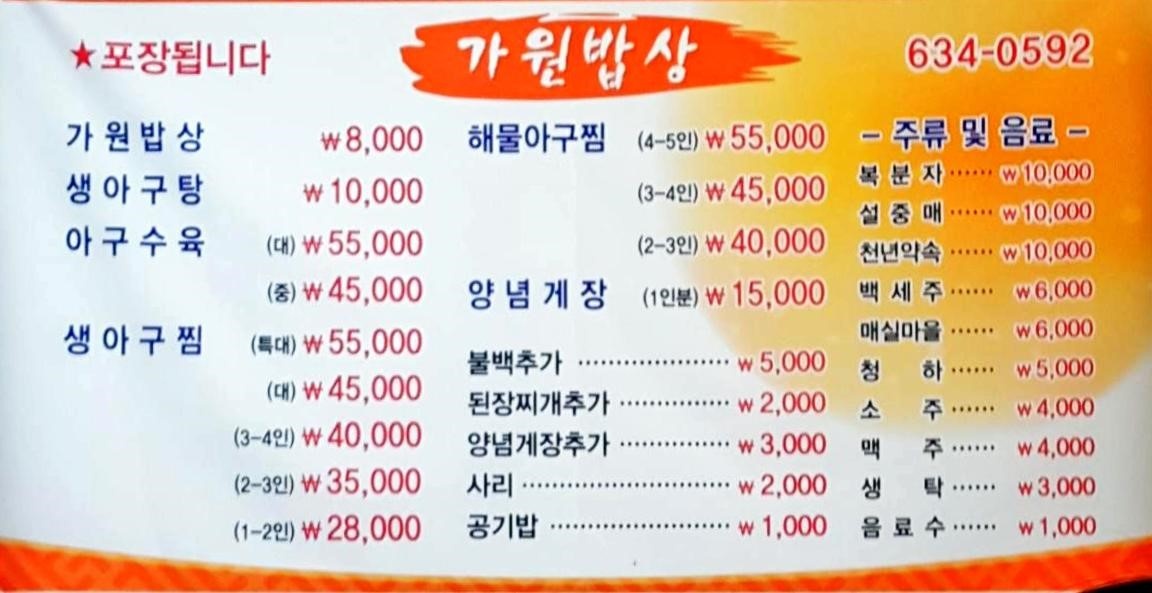 아귀수육을 포함한 여러 메뉴들이 인기를 끌고 있으며, 주차도 가능한 편리한 위치에 있습니다.
