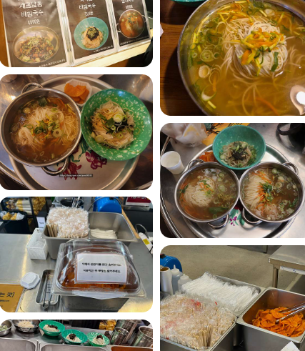 많은 방문객들이 파기름 비빔국수와 진한 멸치국수를 극찬하고 있습니다.