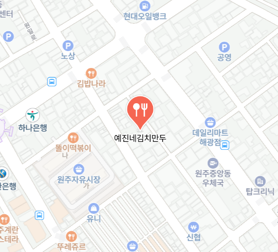 원주시 중앙시장에 위치한 예진네 김치만두는 원주 지역에서 전통의 맛을 자랑하며,