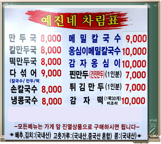 - 칼만두국: 8,000원