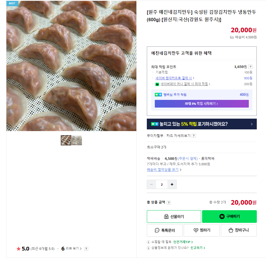 예진네 김치만두는 네이버스마트스토어를 통해 간편하게 택배 주문 가능합니다.