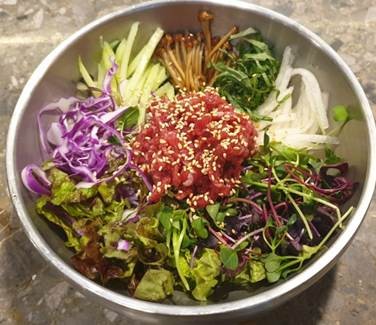 시원하고 상큼한 물회와 신선한 한우가 조화를 이루는 독특한 메뉴로, 여름철에 특히 인기 있습니다.