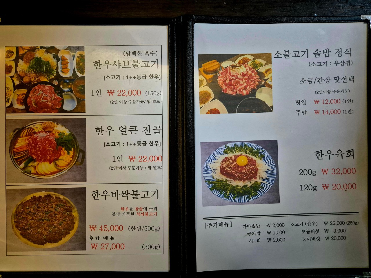한우샤브불고기와 한우바싹불고기가 대표 메뉴입니다.