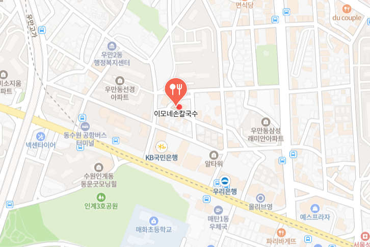 이모네 칼국수는 수원 중심부에 위치하고 있어 접근성이 뛰어나며,