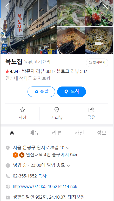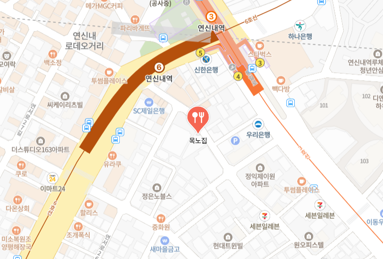 목노집은 연신내역 근처에 있어 접근이 용이합니다.