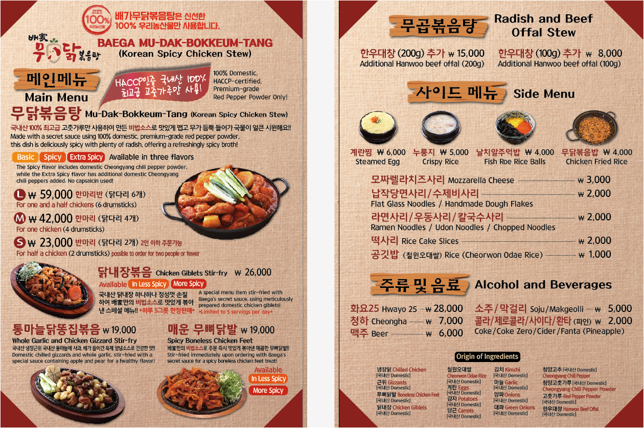 닭다리의 양에 따라 가격이 달라지며, 감자와 무의 풍미를 가득 담아낸 국물과 잘 어울리는 메뉴들이 제공됩니다.
