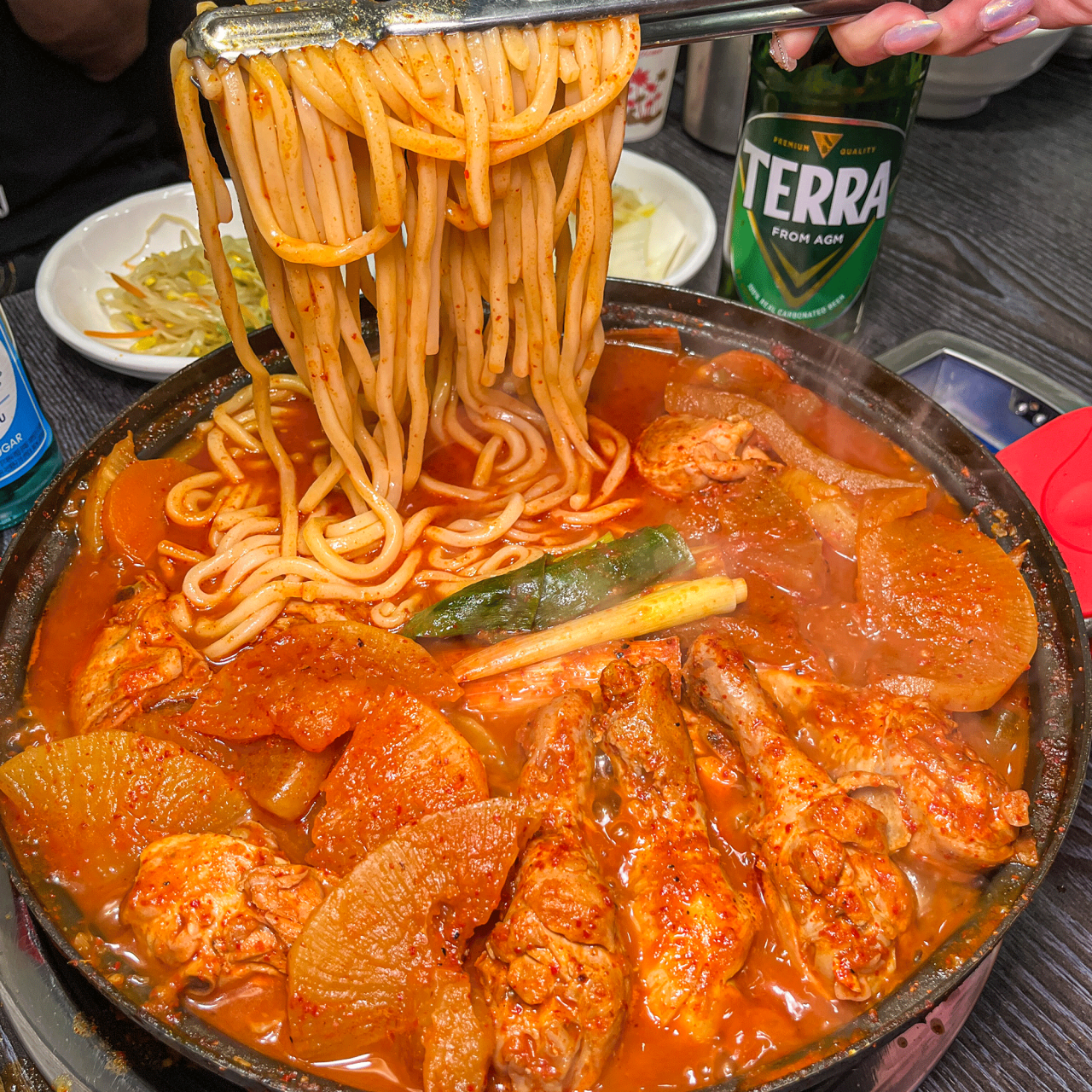 서울 선릉역 인근의 대치동 배가무 닭볶음탕은 무를 활용한 시그니처 요리로,