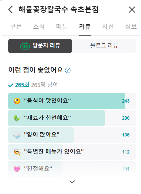 많은 후기에서 공통적으로 언급되는 점은 해산물의 신선함과 깊은 육수의 맛입니다.