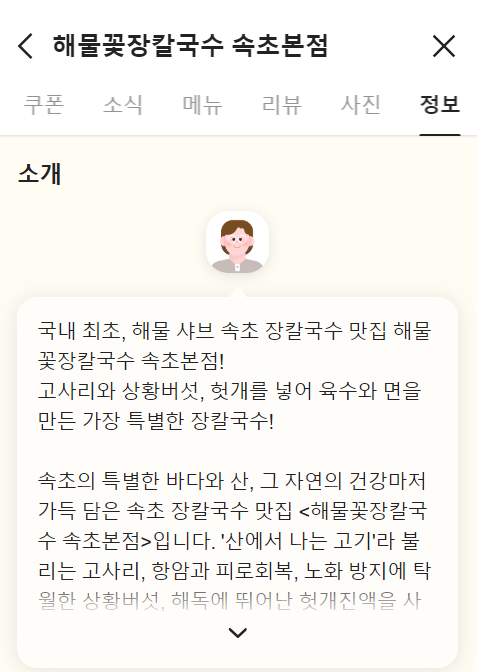 <해물꽃장칼국수 속초본점>은 속초 조양동에 위치한 해물 장칼국수 전문점으로,