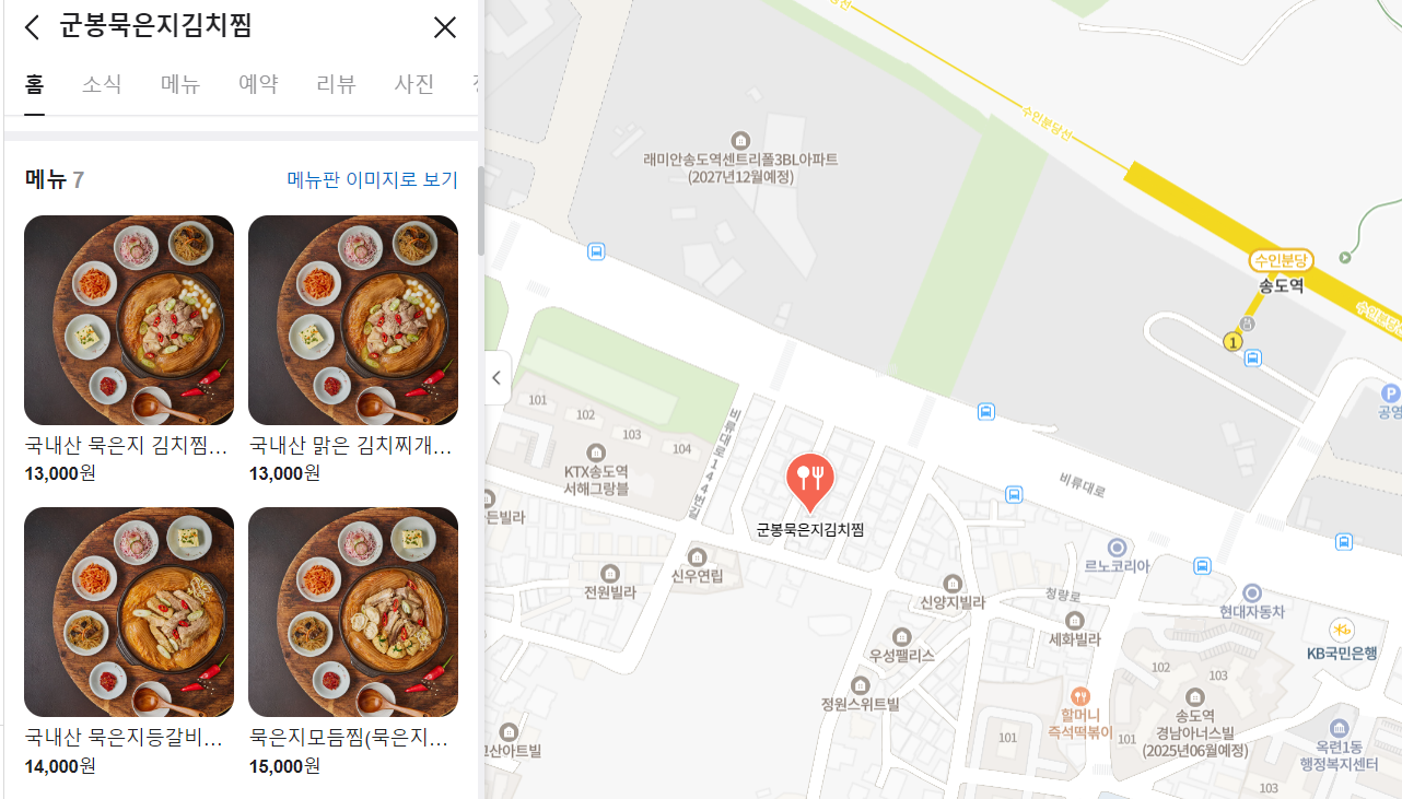 - 가게명: 군봉묵은지김치찜