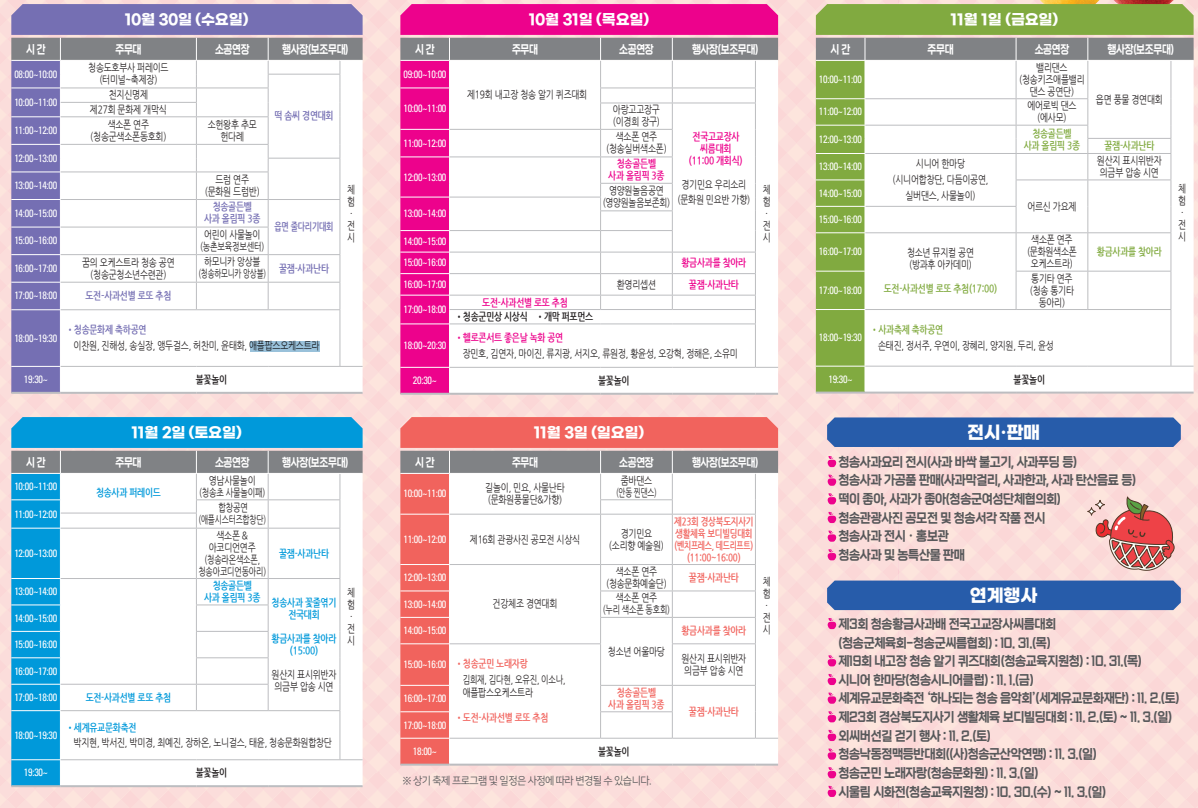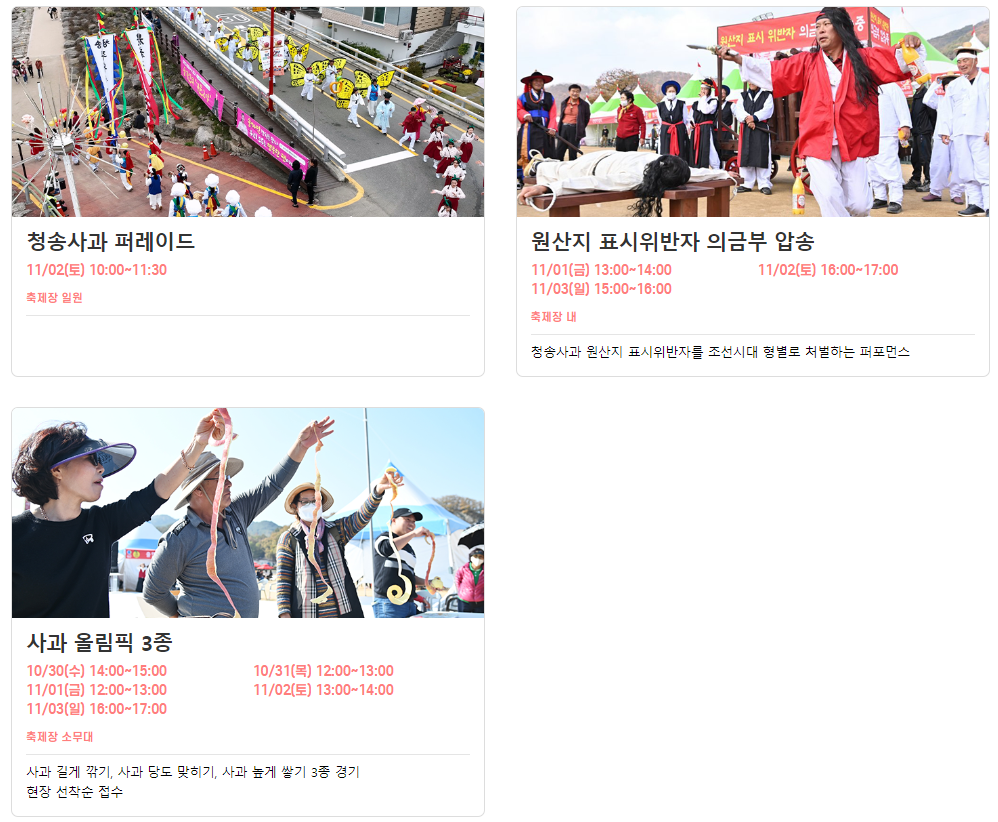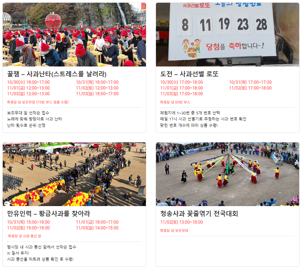 각 가수별 일정이 다르니 꼭 청송사과축제 홈페이지에서 확인하고 방문하세요!