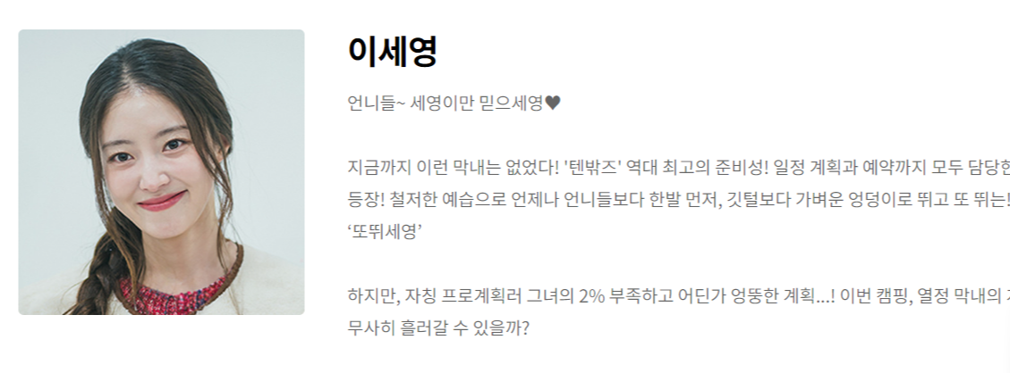 - 형식: 캠핑과 여행을 주제로 한 예능 프로그램