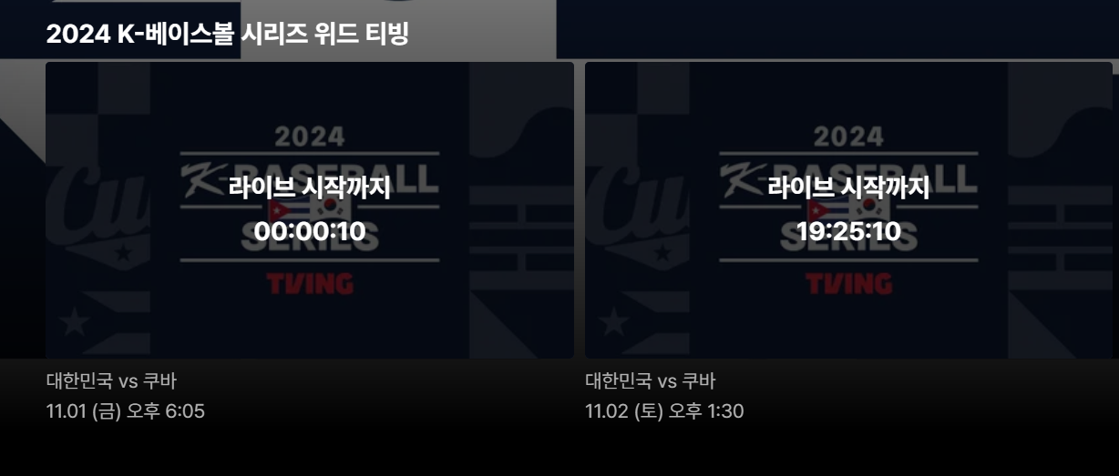 이번 경기는 11월 1일 오후 6시 30분과 11월 2일 오후 2시에 티빙(TVING)에서 독점으로 생중계됩니다.