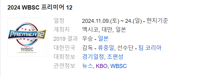 한국은 2015년 프리미어12 1회 대회에서 우승을 차지했으며, 2019년에는 준우승을 기록한 바 있습니다. 이번 대회에서도 강력한 우승 후보로 평가받고 있으며, 국내 팬들은 대표팀이 다시 한 번 세계 야구의 정상에 오르기를 기대하고 있습니다.