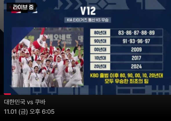 - 티빙(TVING): OTT 플랫폼인 티빙에서는 가입자라면 어디서나 모바일, PC, 스마트 TV 등을 통해 실시간 중계를 시청할 수 있습니다. 티빙은 프리미어12 평가전뿐만 아니라 다양한 스포츠 콘텐츠를 제공하고 있어 손쉽게 이용할 수 있습니다.