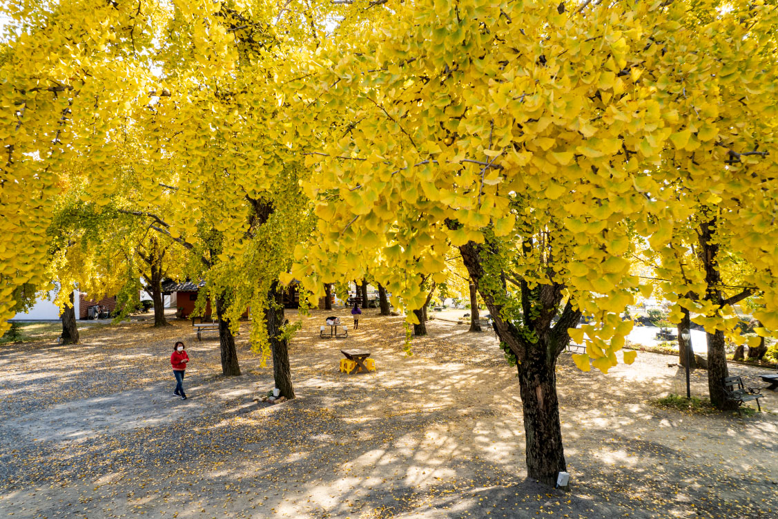 매년 가을이 되면 약 1,000여 그루의 은행나무가 황금빛으로 물들어 방문객들에게 그림 같은 가을 풍경을 선사합니다.