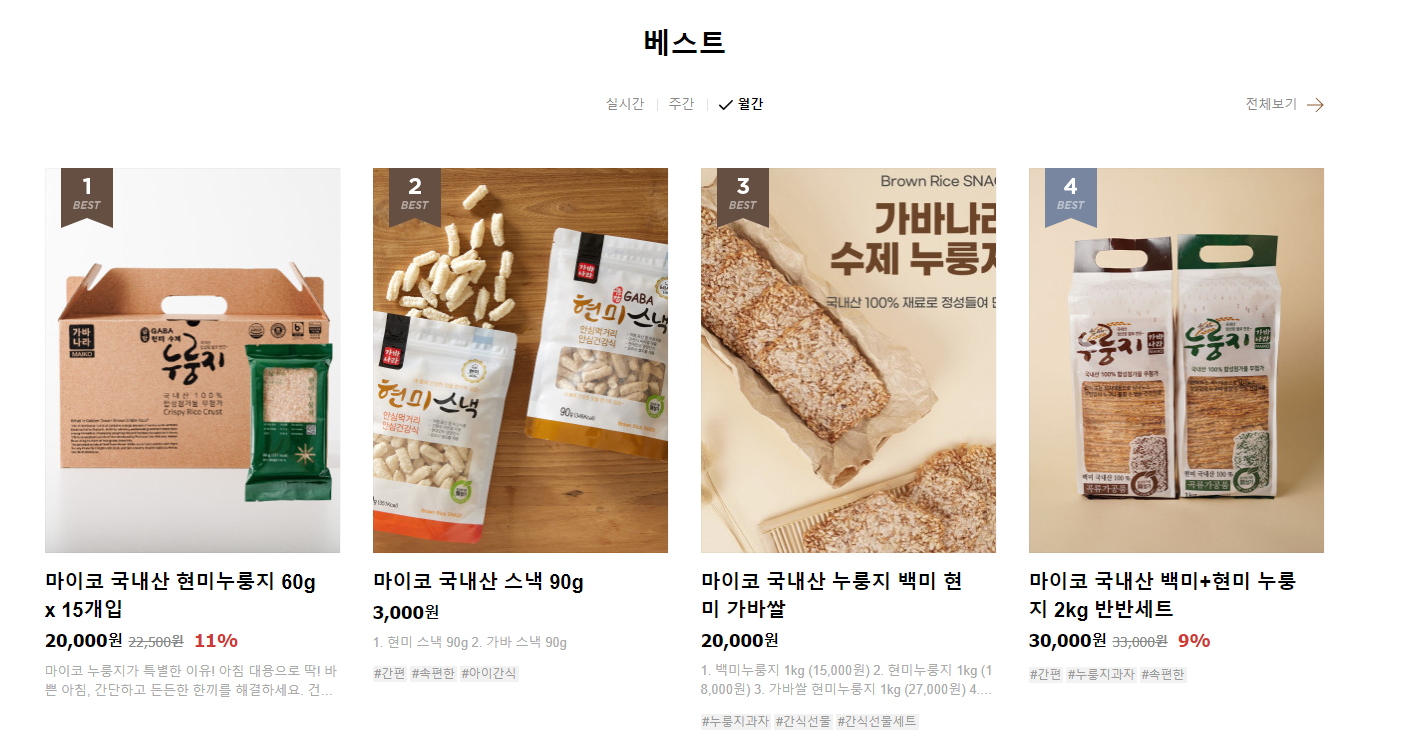 정성스럽게 만든 국내산 쌀을 사용한 누룽지와 쌀과자는 건강한 맛과 바삭한 식감으로 많은 사랑을 받고 있습니다.