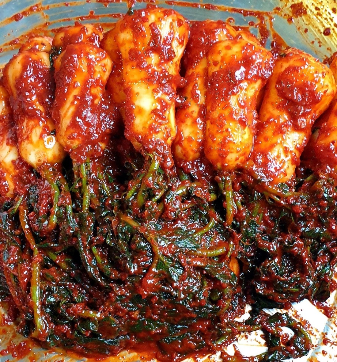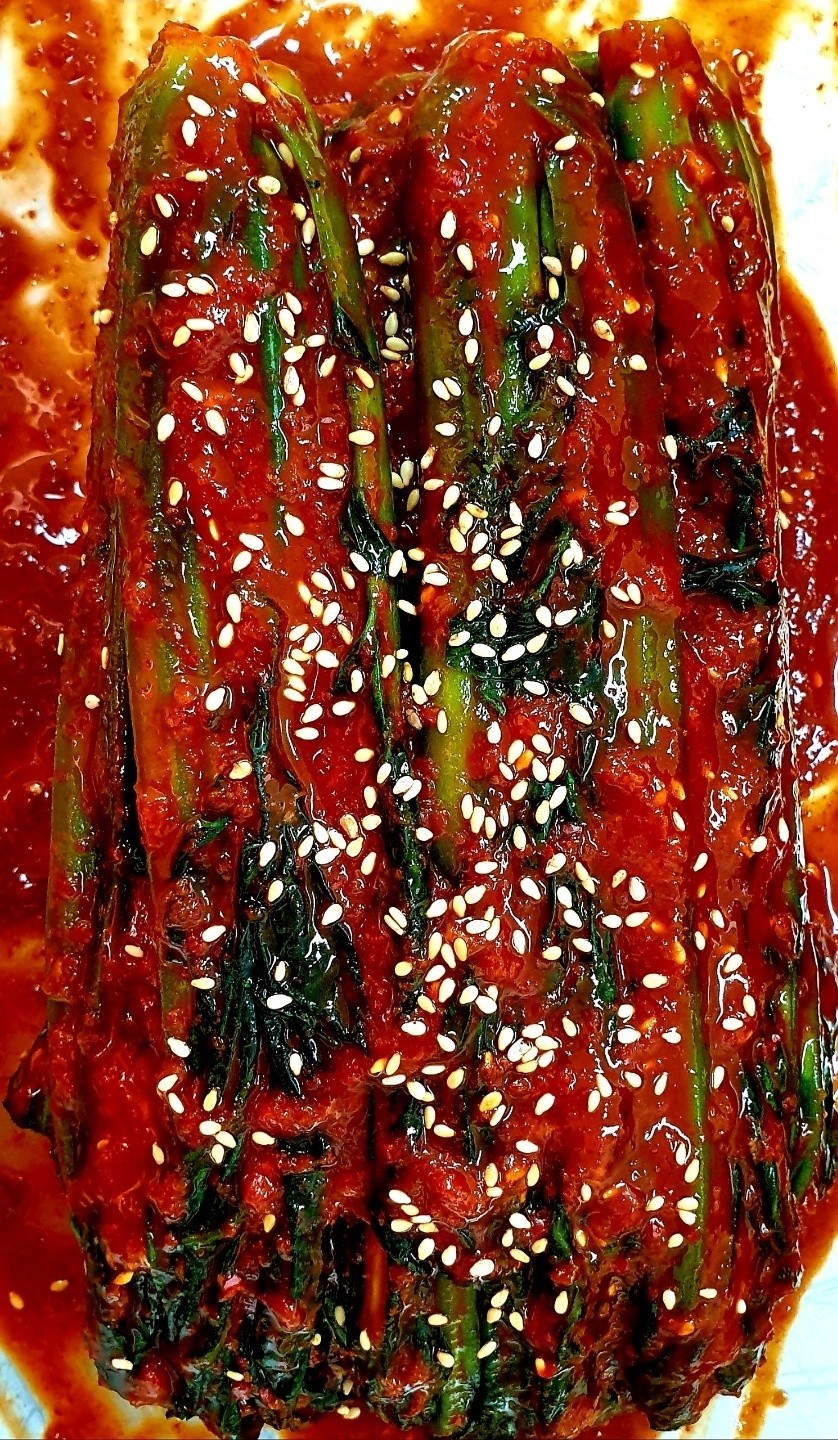 갓김치 역시 부모님이 직접 재배한 양파와 광양 대봉홍시로 건강한 단맛을 더해 담근 것이 큰 특징입니다.
