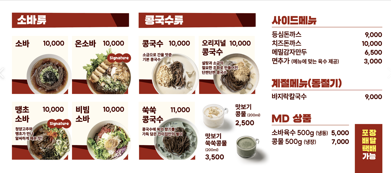 - 메밀콩국수 (기본): 10,000원